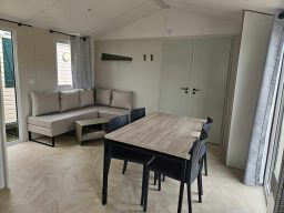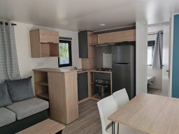 Conçu pour une famille de 4 personnes, ce mobil-home de 2 chambres et 1 salle de bain est disponible sur parcelle au Domaine du Grearn